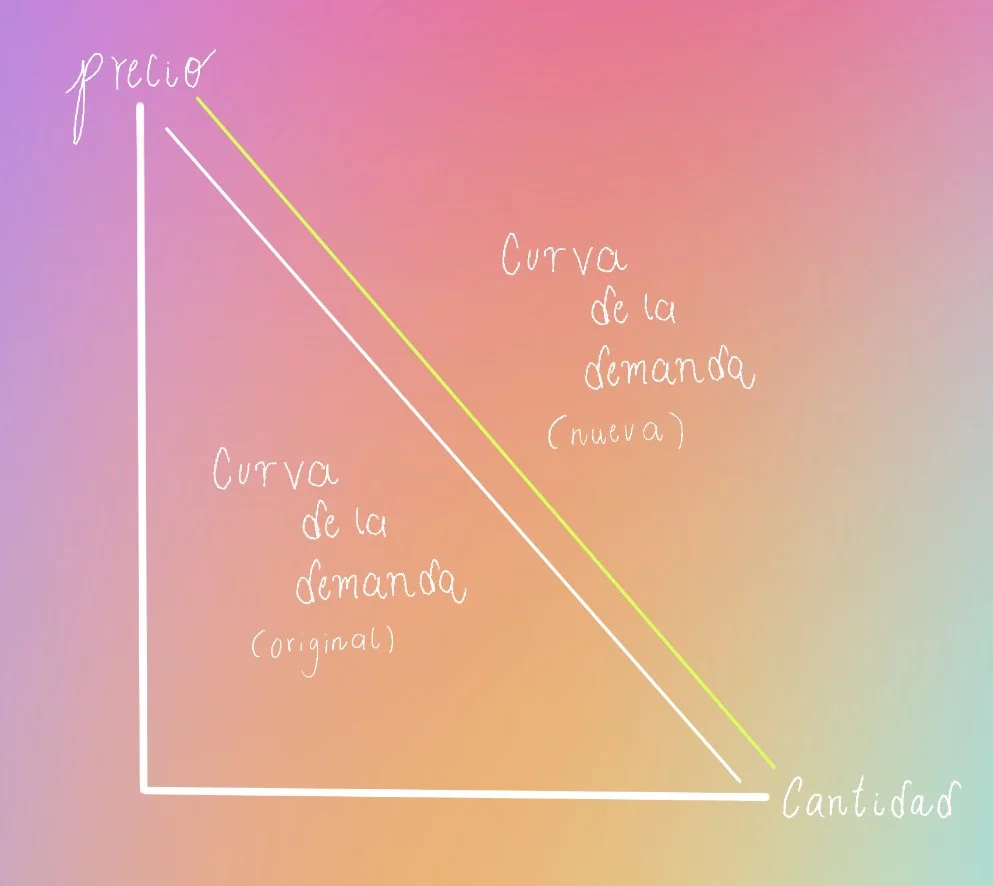 Si un factor externo aumenta la demanda de un bien o servicio la curva se desplazará a la derecha