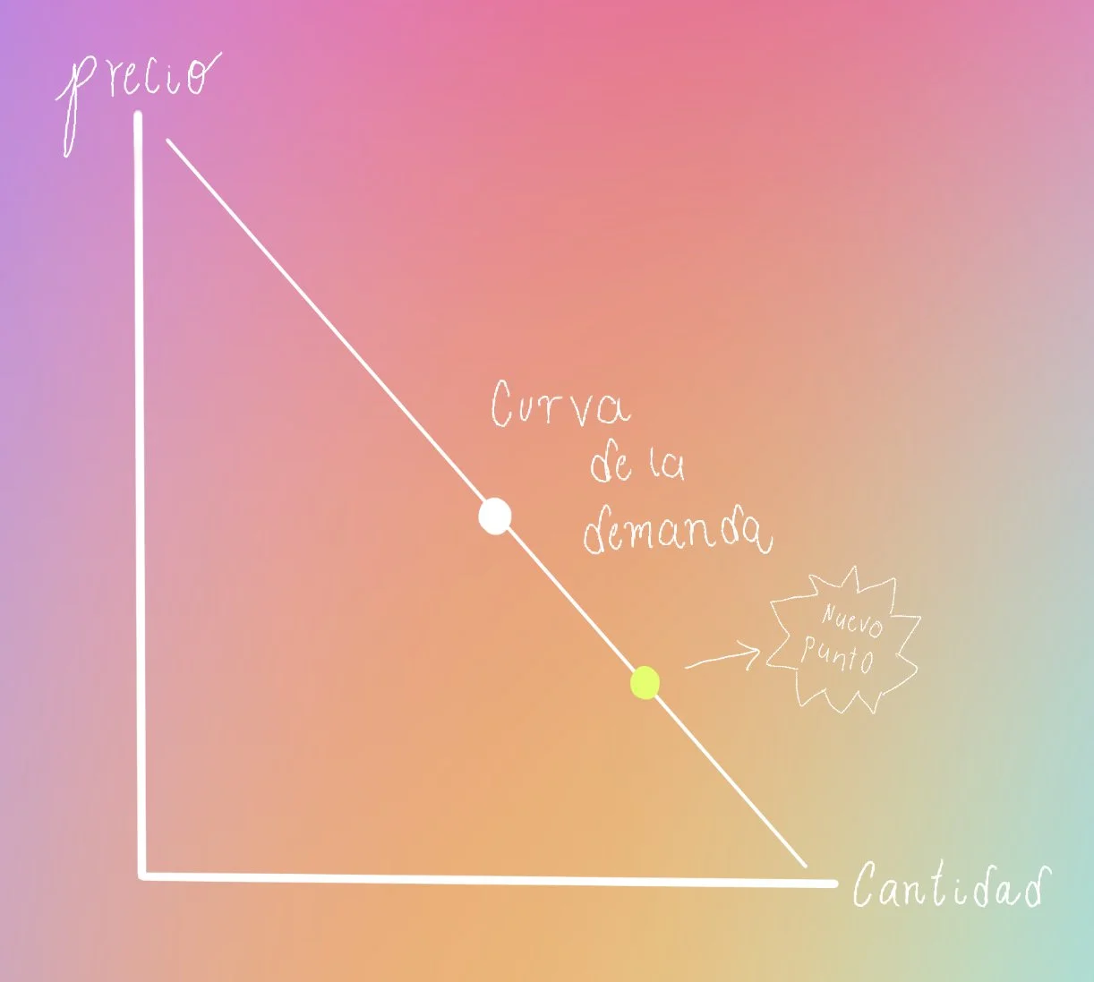 Si el precio del bien o servicio disminuye, el punto dentro de la curva se mueve hacia abajo (a la derecha).